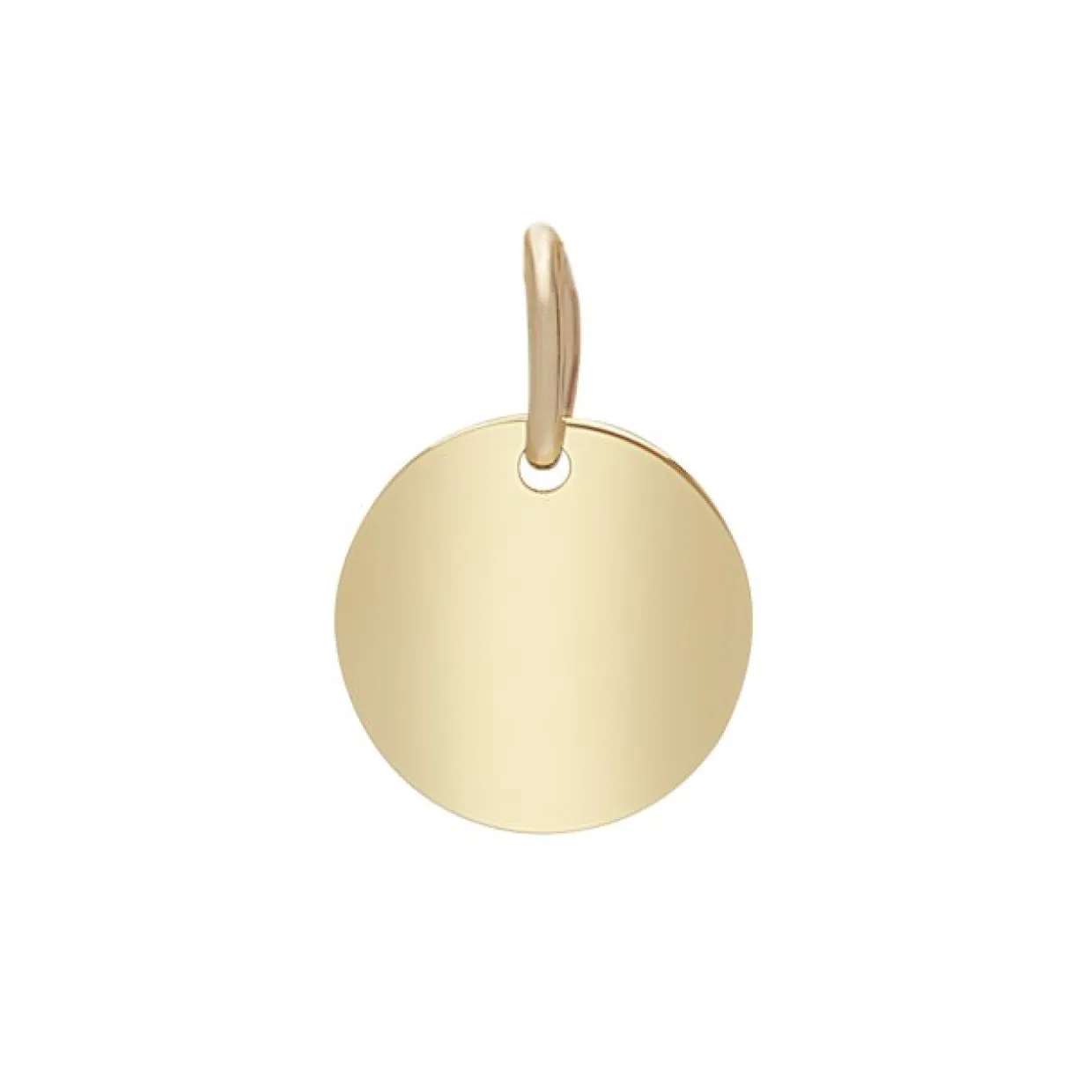 Dette simple vedhæng, er fremstillet i 14 karat rød guld, og er blank i overfladen. Vedhænget måler 10mm i diameter. Vedhænget er oplagt til at gravere på.