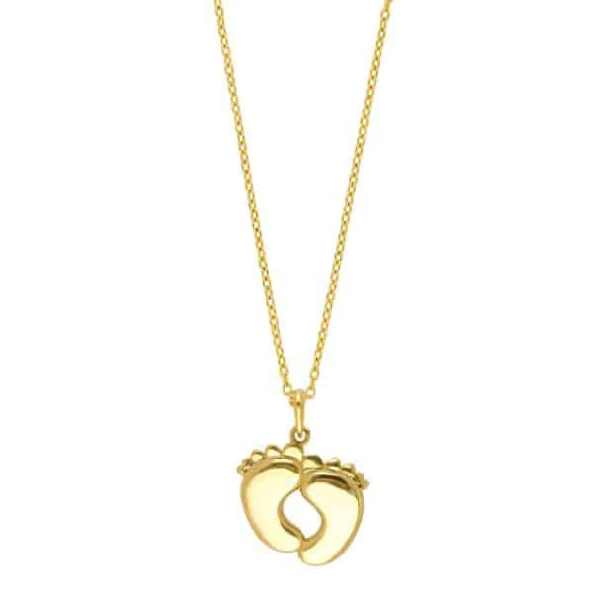 Dette søde vedhæng, er fremstillet i 8 karat rød guld og er formet som to fødder. Vedhænget er den perfekte gave, til den nybagte forældre. Til vedhænget følger en sølv forgyldt kæde med, som måler 45 cm.