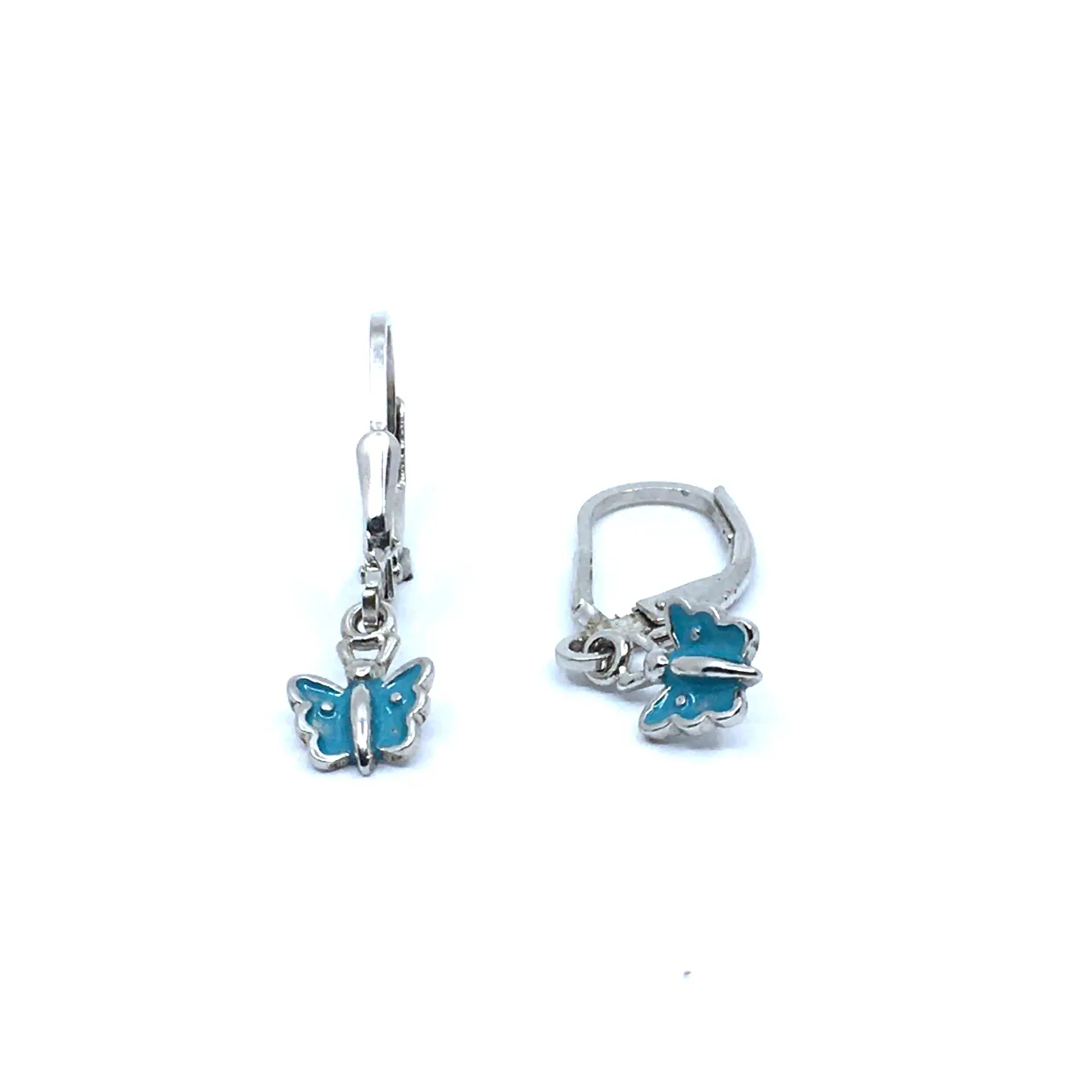 SØLV ØRERINGE HÆNGER BØRNE MED TURKIS SOMMERFUGL