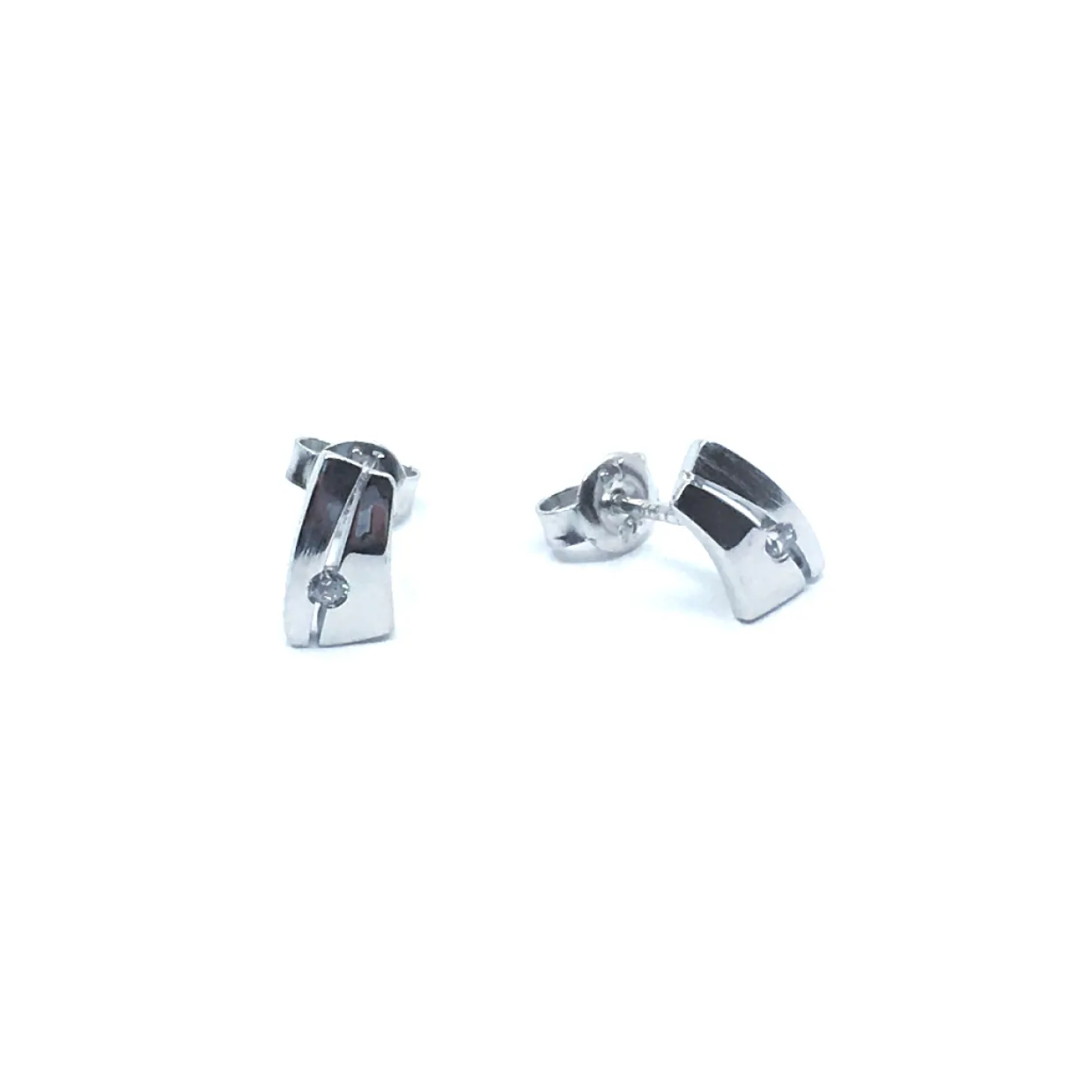 SØLV ØRESTIK RHODINERET FIRKANT MED RILLE OG SYNT. ZIRKONIA