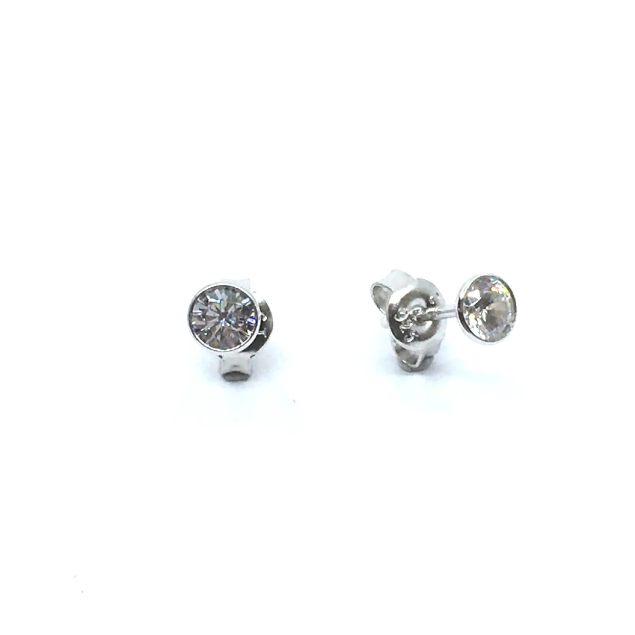 SØLV ØRESTIK RHODINERET MED SYNT. KLAR ZIRKONIA 4 MM RØR FATNING