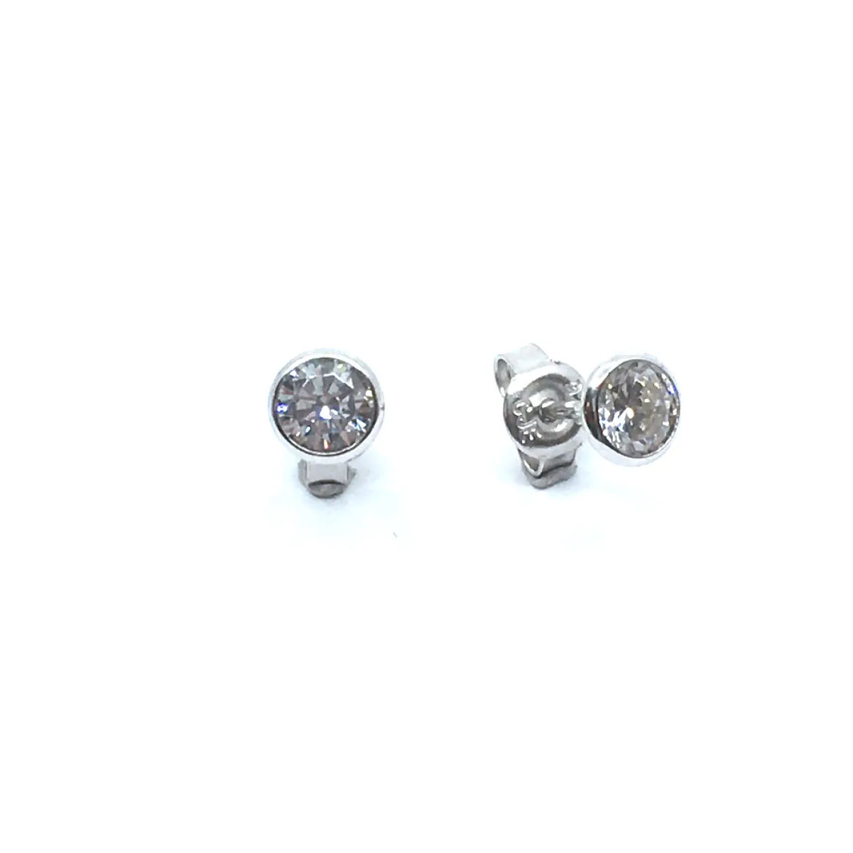 SØLV ØRESTIK RHODINERET MED SYNT. KLAR ZIRKONIA 5 MM RØR FATNING