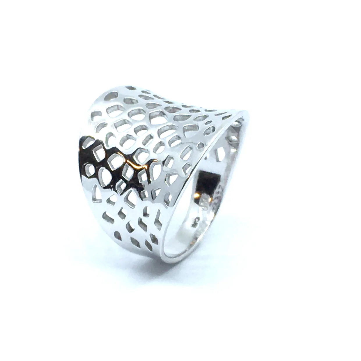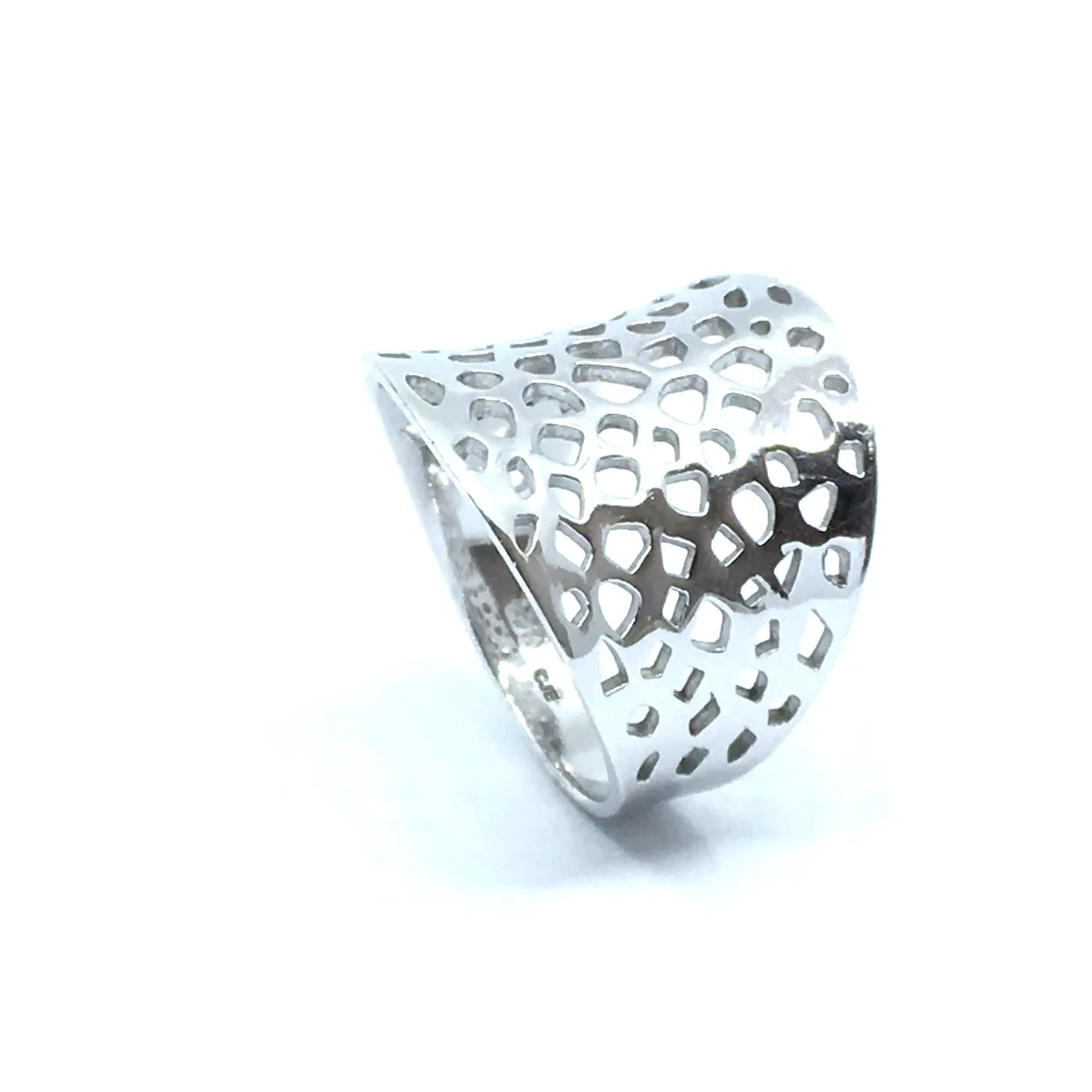 SØLV RING RHODINERET BRED MASSIV HUL MØNSTER