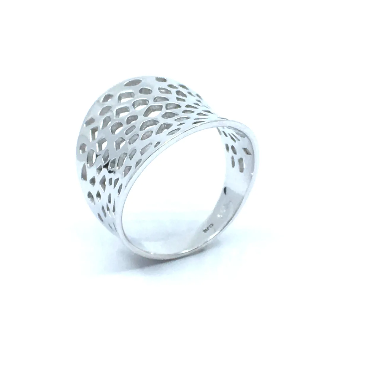 Vær den første til at anmelde “SØLV RING RHODINERET BRED MASSIV HUL MØNSTER” Annuller svar