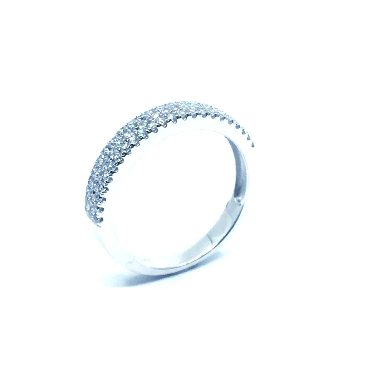 SØLV RING RHODINERET MED 3 RÆKKER SYNTETISKE ZIRKONIA