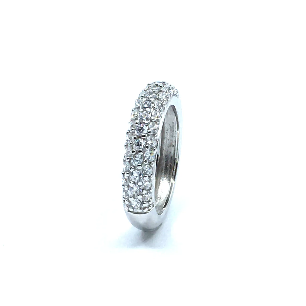 SØLV RING RHODINERET MED 3 RÆKKER SYNTETISKE ZIRKONIA
