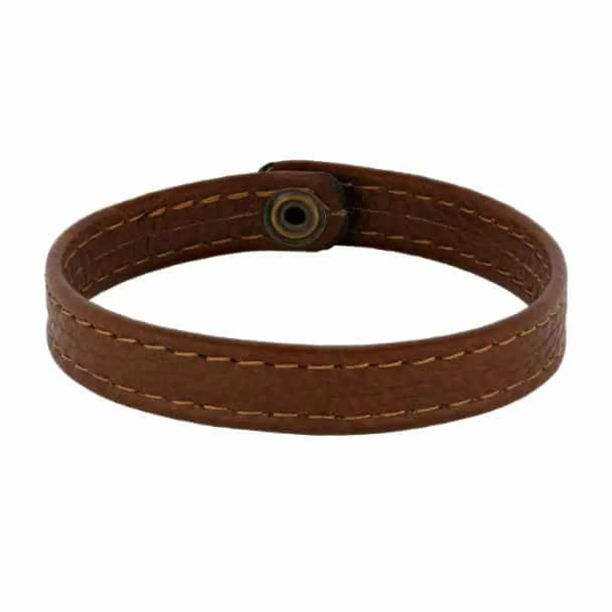Maskulint armbånd i brunt kalveskind med knap lukning. Armbåndet måler 10 mm. i bredden og er 21 langt.