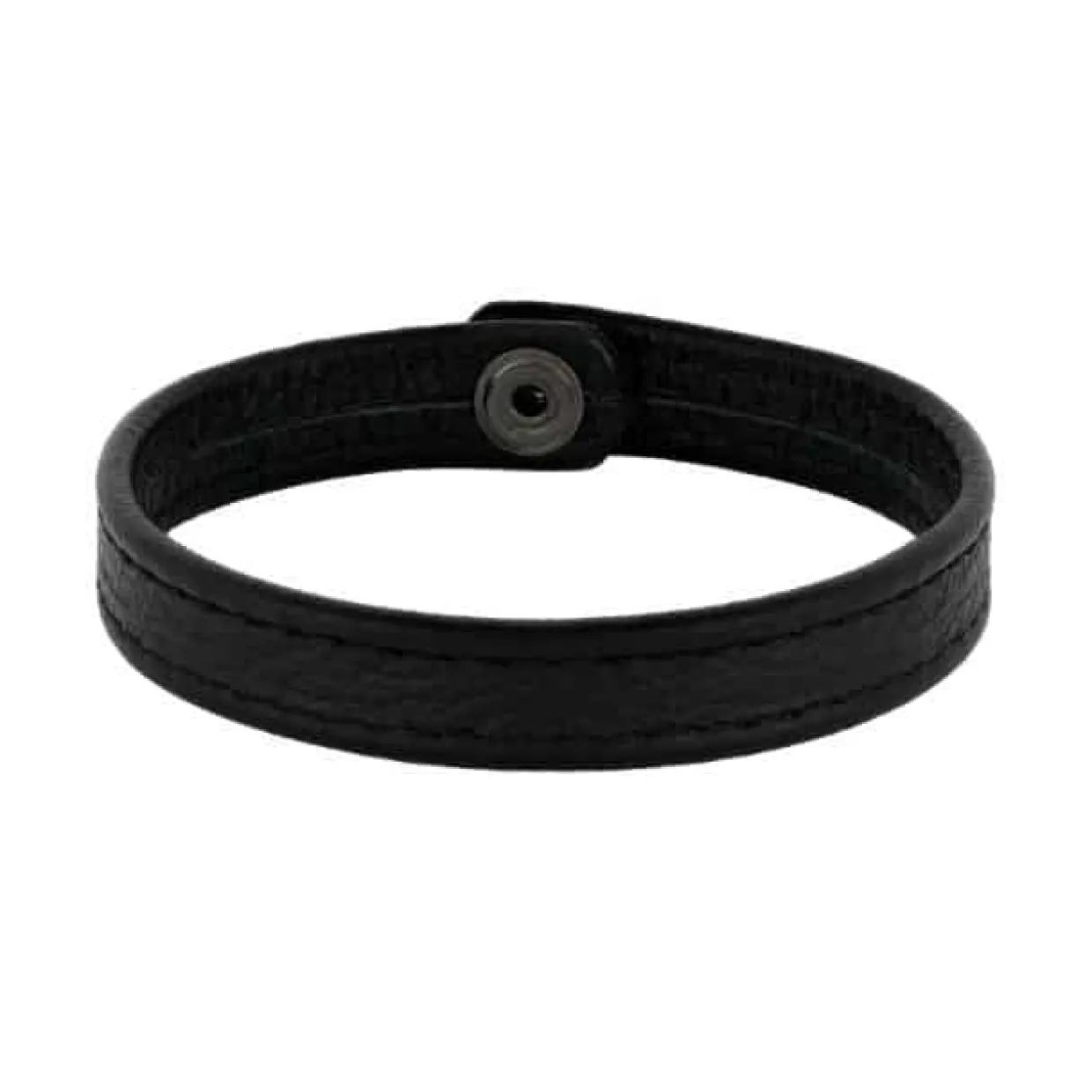 Flot armbånd i sort kalveskind med en knap lukning. Armbåndet måler 10 mm. i bredden og er 21 cm. langt.