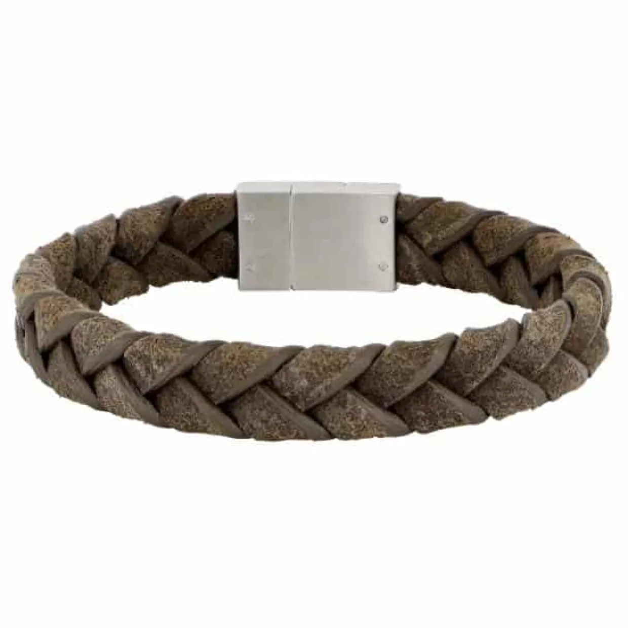 Armbåndet er lavet af ægte kalve skind i grå som er flettet.