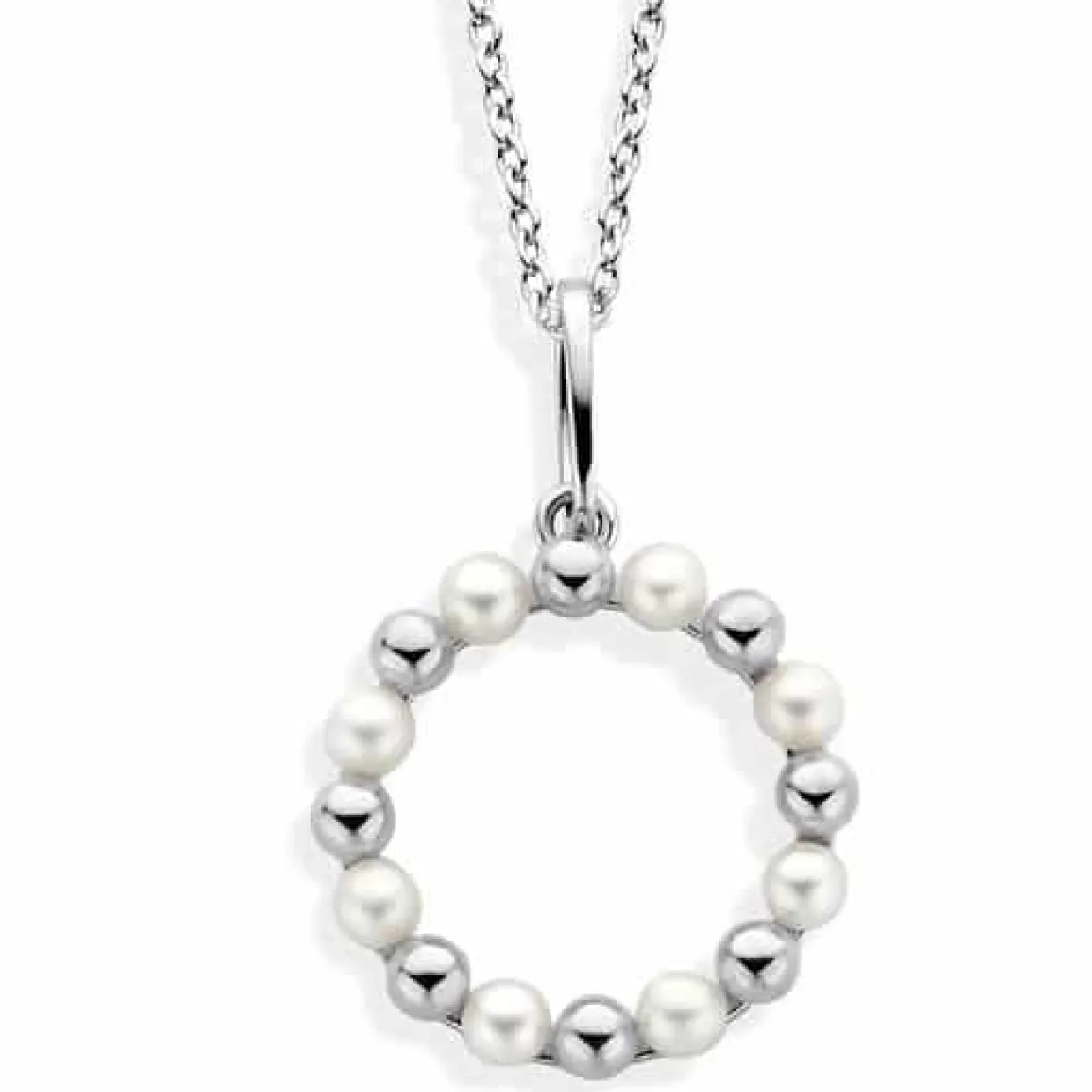 Gem halskæden er fremstillet i 925 sterling sølv med hvide ferskvandsperler, sat i en cirkel med skiftevis perle og sølv kugle.
