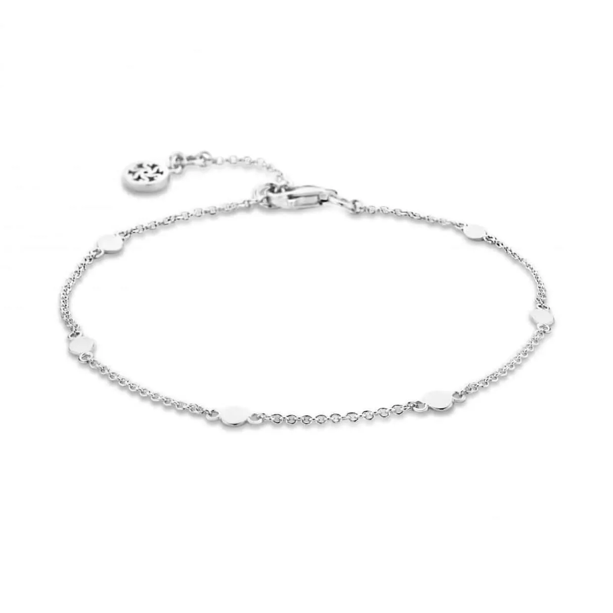 Enkelt sølv armbånd fra Sprit Icons. Armbåndet har detaljer af 5 små runde sølv plader, der sidder rundt om armbåndet.