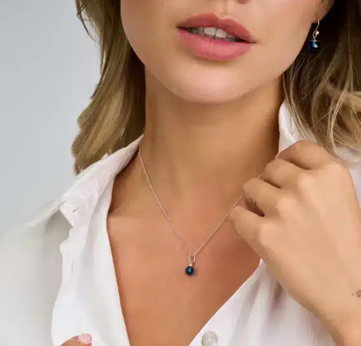 I ørehængeren sidder der en smuk blå agat med en hvid zirkonia foroven.
