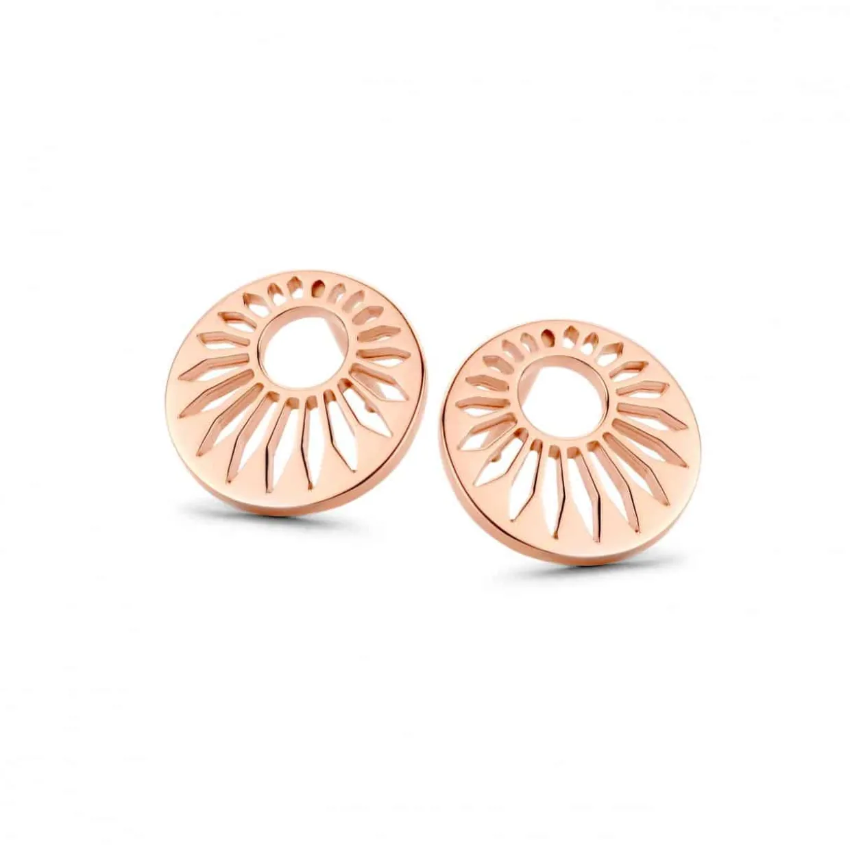 Fine rosa forgyldte ørestikker, fra Spirit icons. Ørestikkerne har en blank poleret overflade, med et design som fjerene på en påfugl.