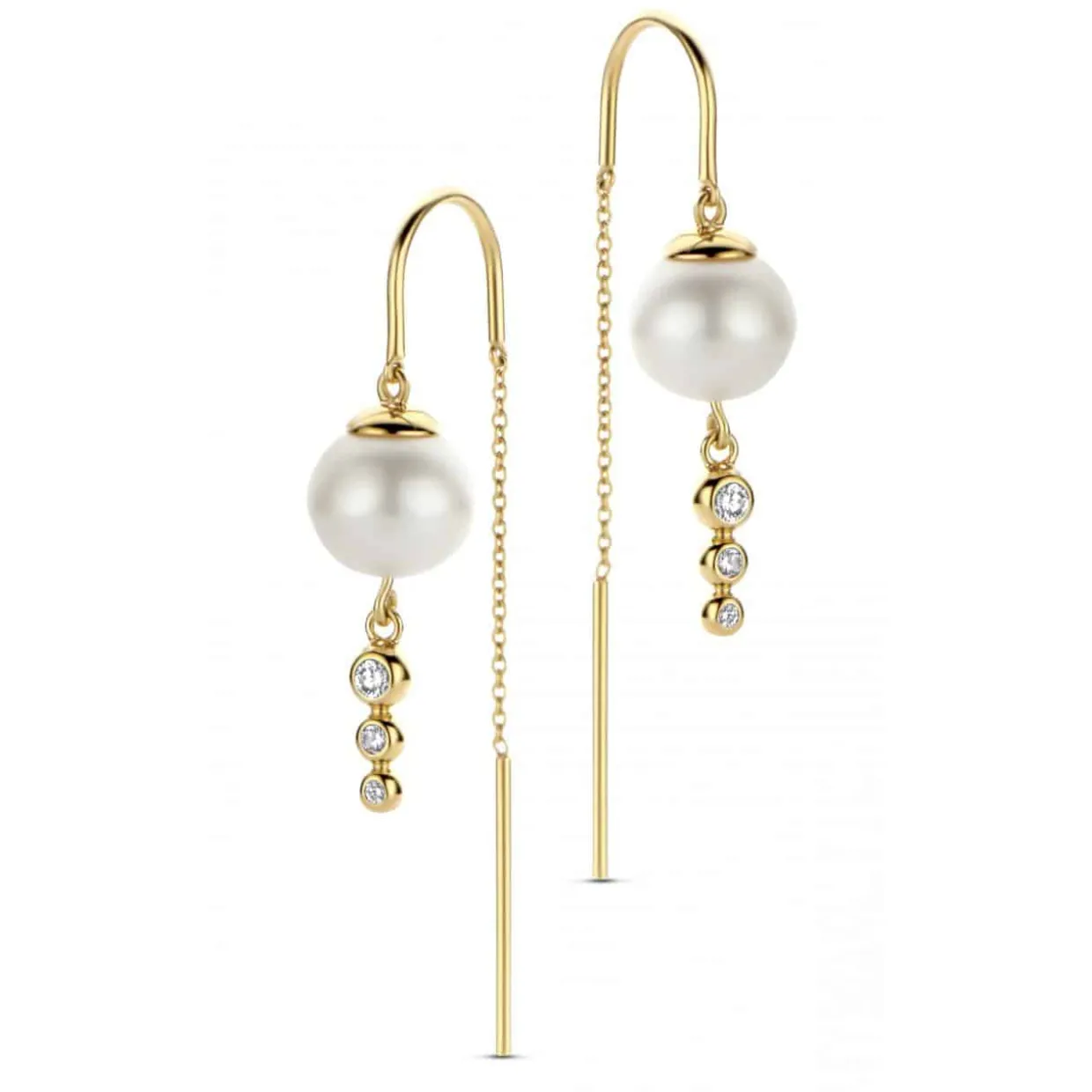 En flot og enkel ørering der falder flot. Spirit Icons har skabt disse skønne øreringe der er rigtig feminine og eksklusive at se på. Øreringene er skabt i sterling sølv med ferskvandsperler og har en overflade der er forgyldt.
