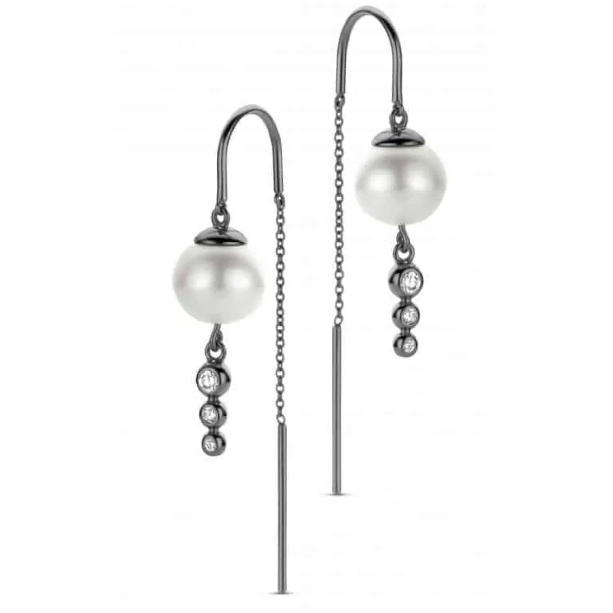 En flot og enkel ørering der falder flot. Spirit Icons har skabt disse skønne øreringe der er rigtig feminine og eksklusive at se på. Øreringene er skabt i sterling sølv med ferskvandsperler og har en overflade der er rhutineret.