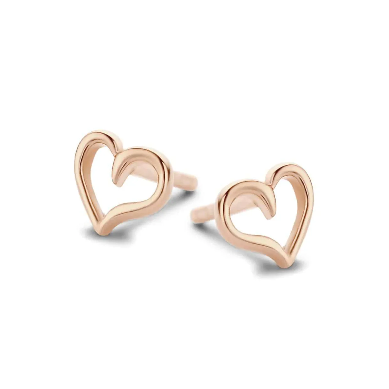 Små fine forgyldte ørestikker, formet som et hjerte.