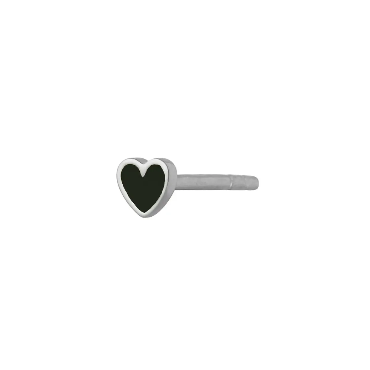 Øreringen er et lille fint sort emalje hjerte