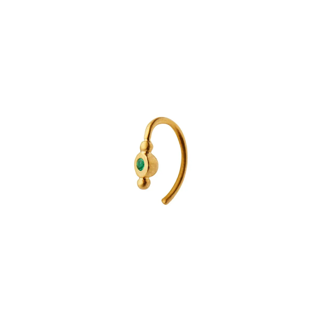 Smuk og elegant ørering fra Stine A, designet i 18 karat forgyldt sterling sølv og prydet med en fin grøn zirkon, der tilfører et diskret strejf af farve og eksklusivitet. Med sin længde på 10 mm er den perfekt til både hverdagsbrug og til at sætte et sofistikeret præg på festlige looks.