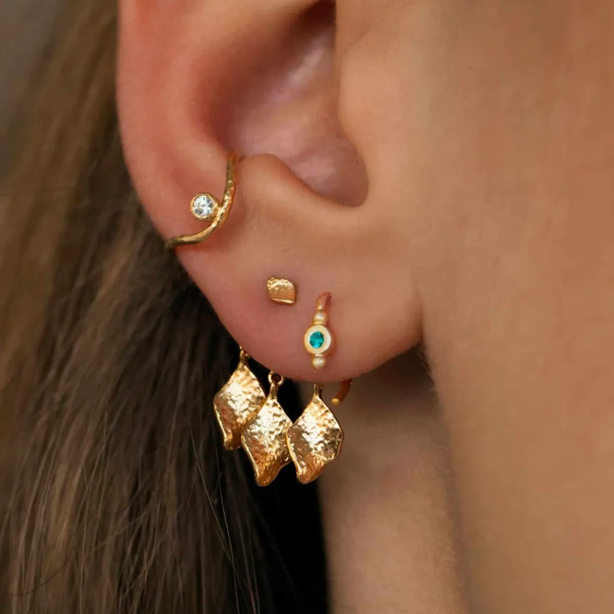 Øreringen er lavet i 18 karat forgyldt sterling sølv.