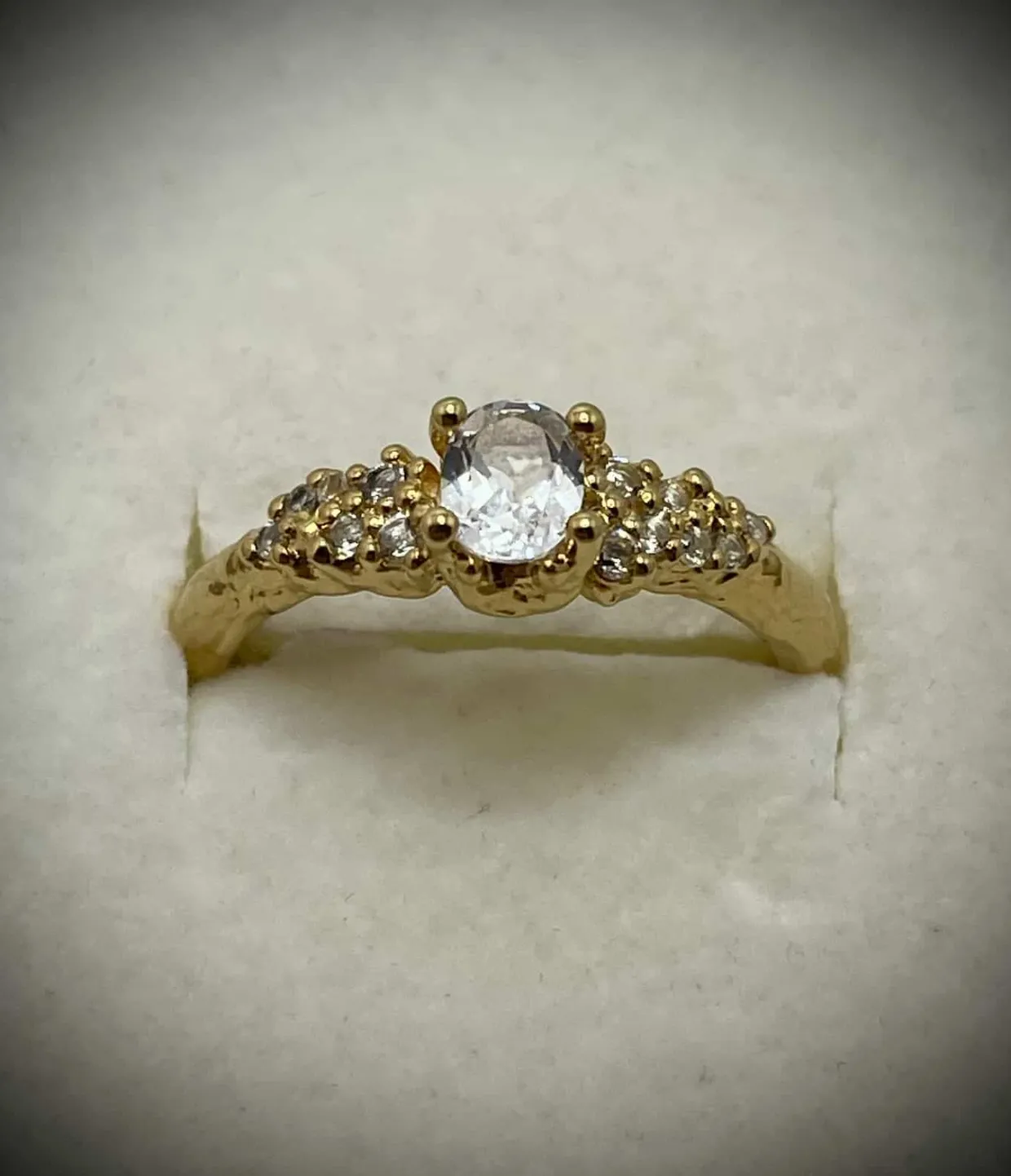Elegant og betagende ring fra Studio Z, i sølv belagt med 18 karat guld. Ringen har et tidsløst og fint design med organiske former og zirkonia der fuldender looket. Perfekt til at pifte ethvert outfit op.