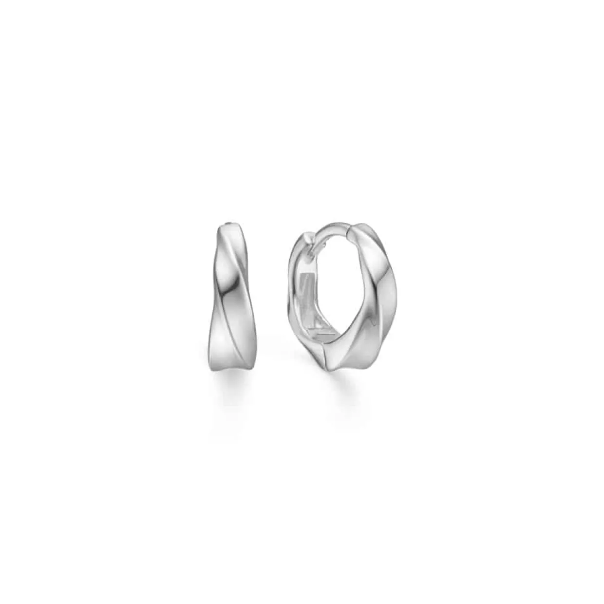 Sølv øreringe som creol med snoet form. Creolerne er med knæk funktion, så de er lettere at sætte i øret og tage af. Creolerne er med blank oveflade og uden sten.