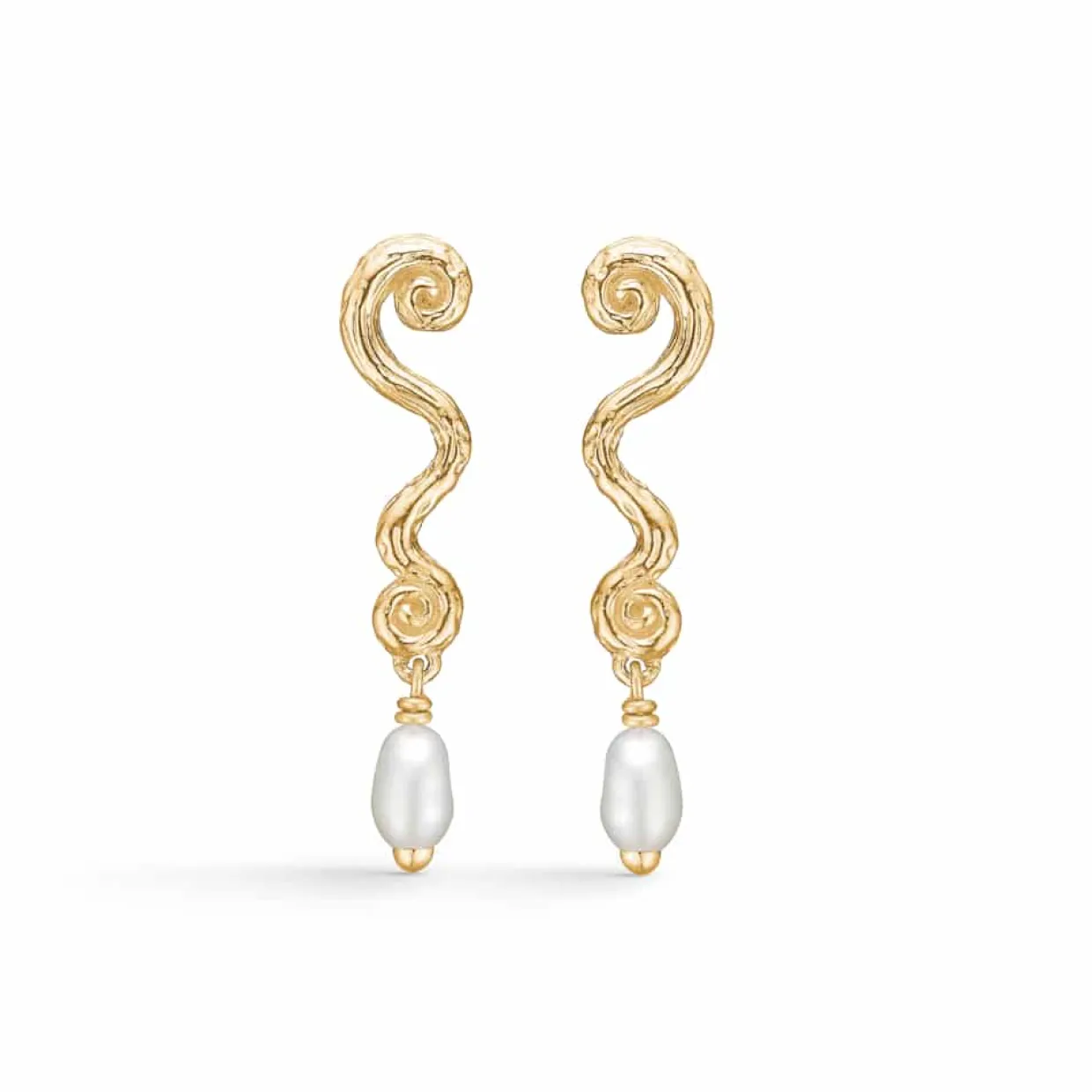 Smukke og unikke øreringe fra Studio Z, med et flot krøllet design, og hvide ferskvandsperler.