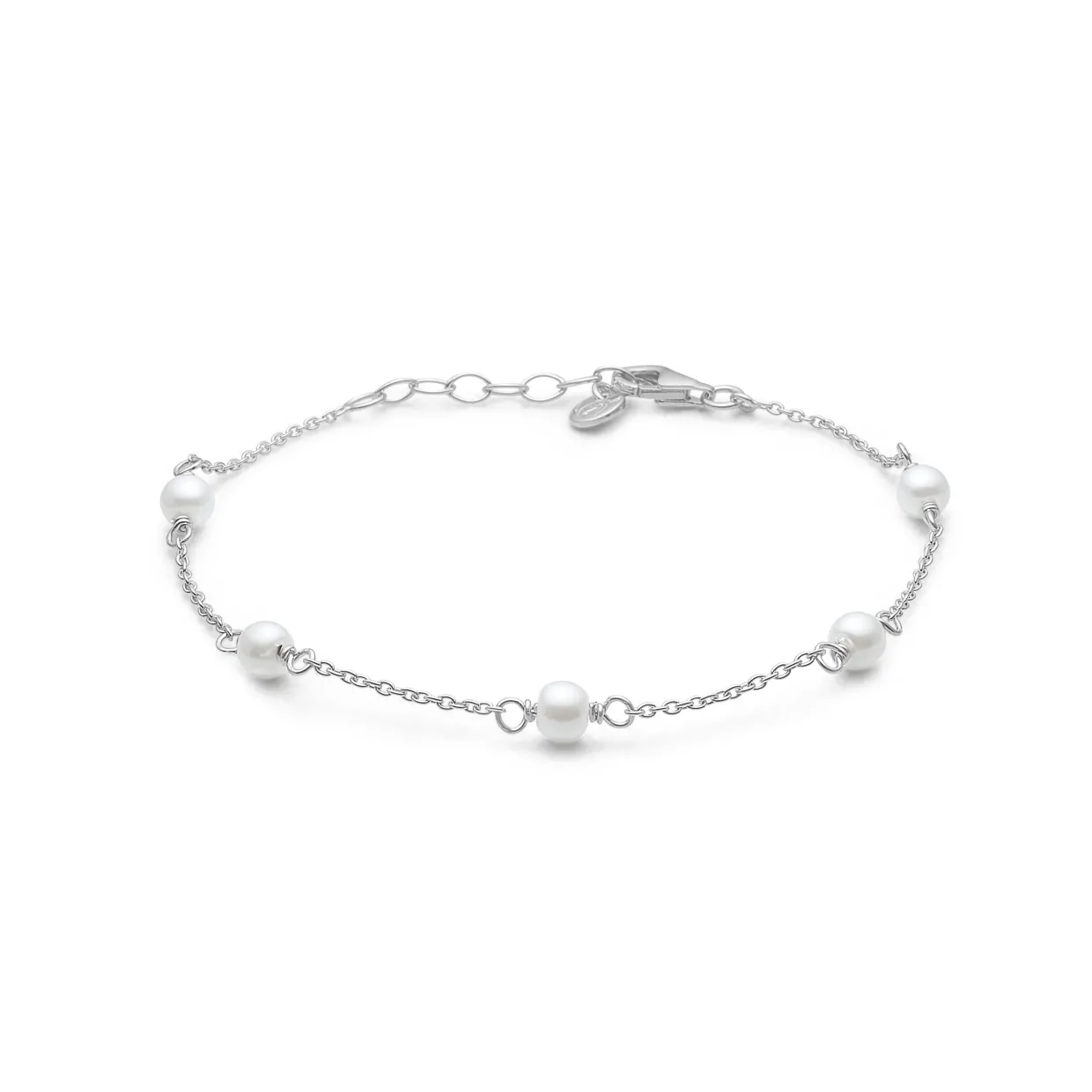 Smukt armbånd fra Studio Z i 925 sterling sølv og med 5 hvide ferskvandsperler. Elegant armbånd der passer til enhver lejlighed.