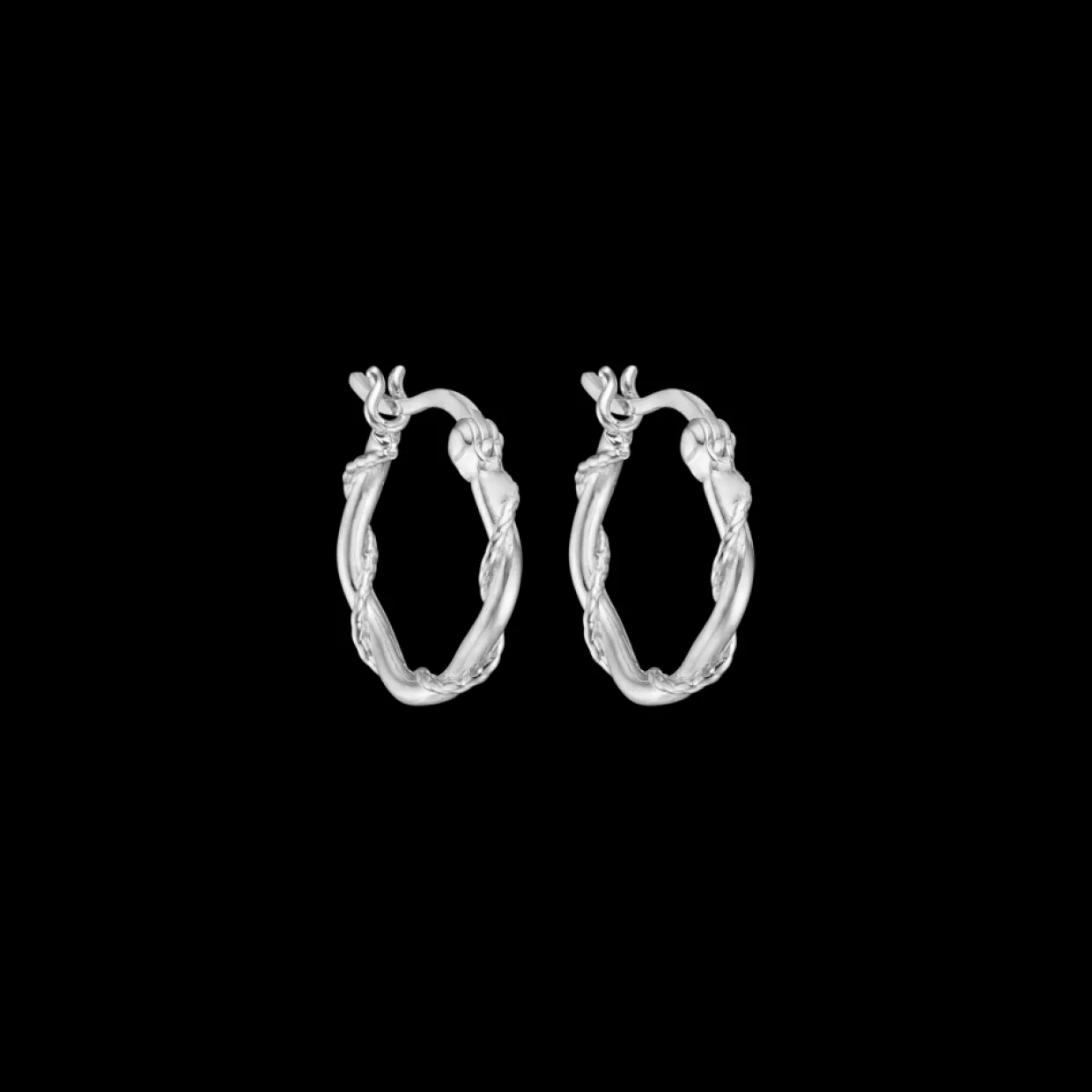 Sølv øreringe som creol med snoet form. Creolerne er med hængsel så de er lette at sætte i og tage af.