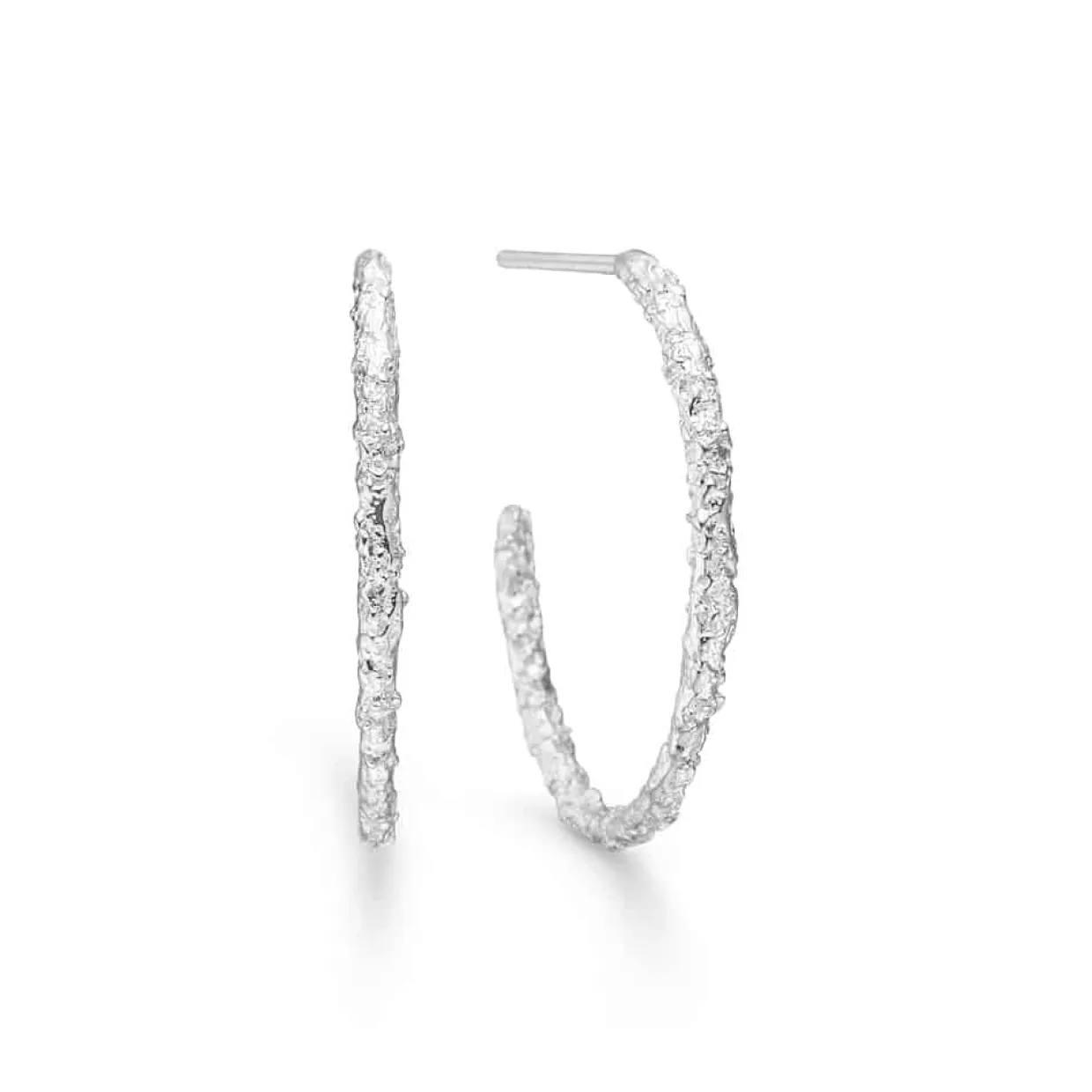 Sølv creoler med rustik overflade er et par unikke og moderne øreringe, der kombinerer det klassiske creoldesign med en rå, rustik tekstur. Øreringene er fremstillet i sterling sølv og har en mat, uperfekt overflade, der giver dem et kantet og tidløst udseende. Perfekte til at tilføje et sofistikeret og lidt edgy touch til din stil, disse creoler er ideelle både til hverdagsbrug og særlige anledninger.