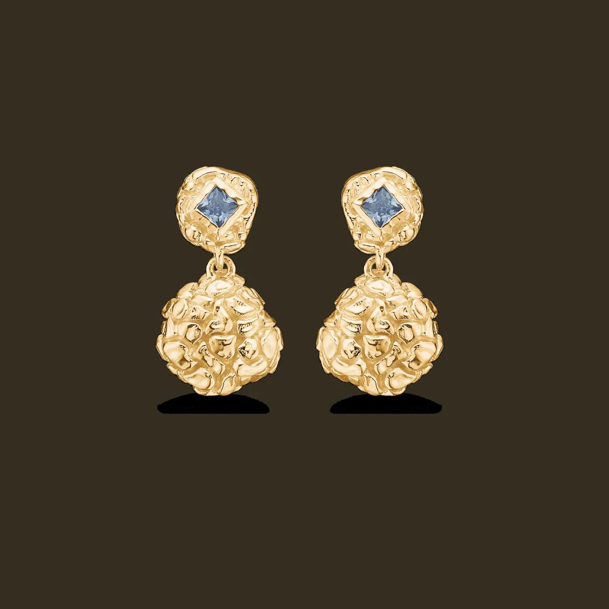 STUDIO Z UNTAMED ØRERINGE FORGYLDT SØLV MED BLÅ/GRÅ STEN – 7217884