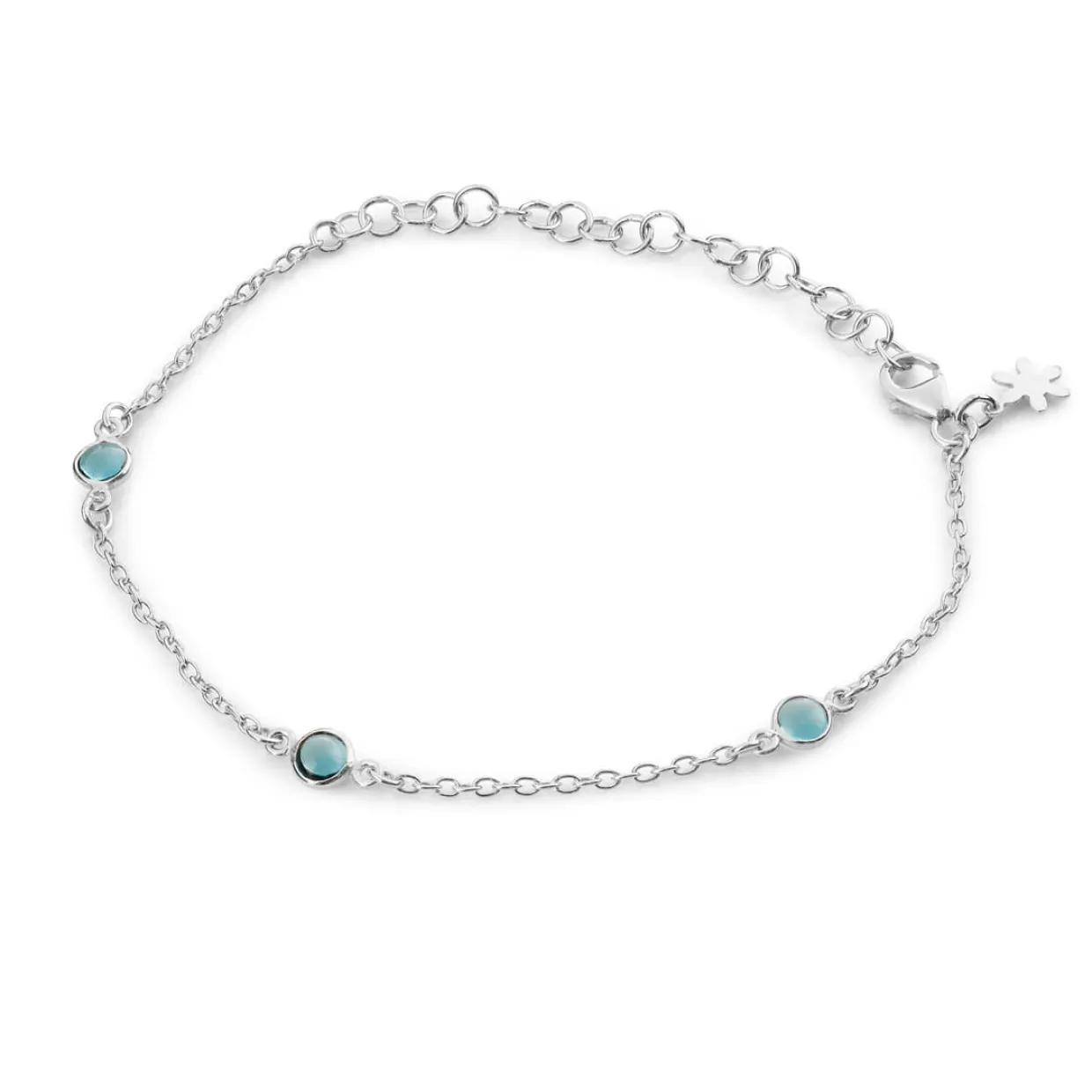 De 3 blå stene måler 5 mm vær og findes også i forgyldt og i andre farver.