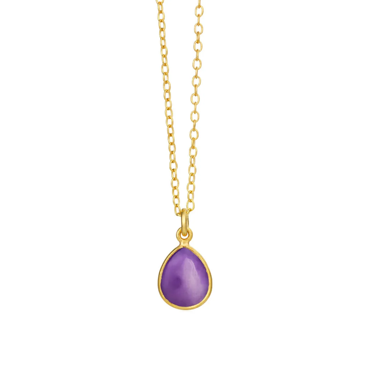 Flot og enkelt halskæde fra Susanne Friis Bjørner. Halskæden har et rigtig fint vedhæng med en flot lilla ametyst. Halskæden er lavet ud af sterling sølv som er blevet forgyldt. Halskæden måler 45 cm.