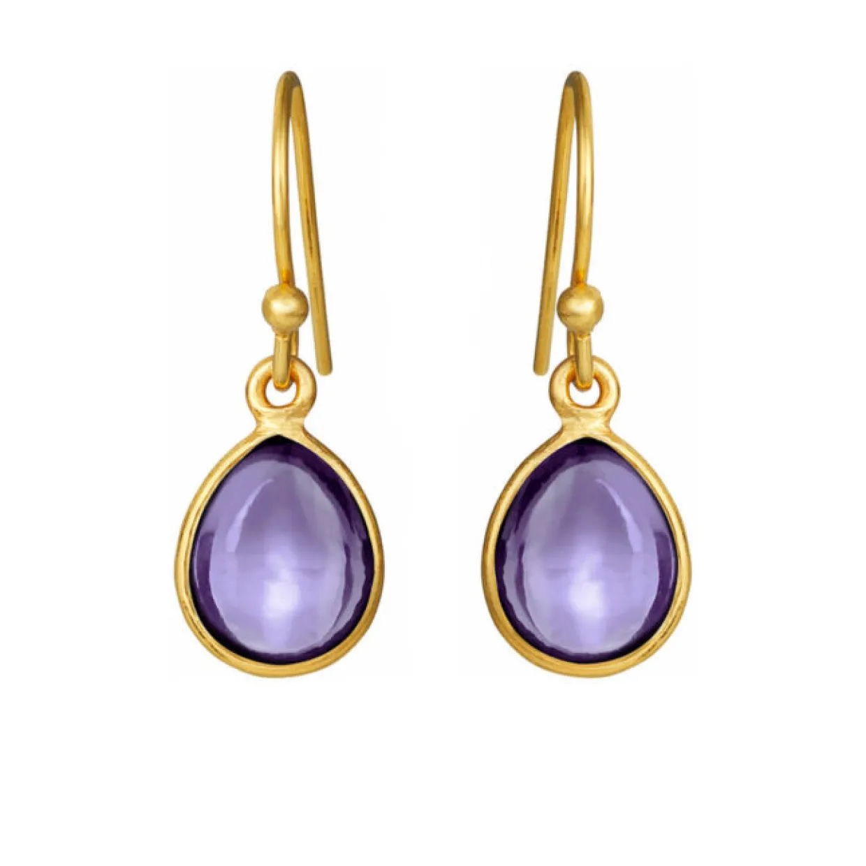 Dråbeformet ørehænger med en ametyst. Disse øreringe er en sand klassiker og findes i flere fine farver. Her træder den lilla farve frem og giver øreringene i karakter.