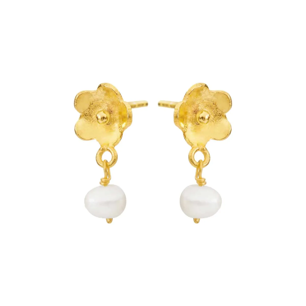 Susanne Friis Bjørner øreringe sølv forgyldt Blomst med en ferskvandsperle.