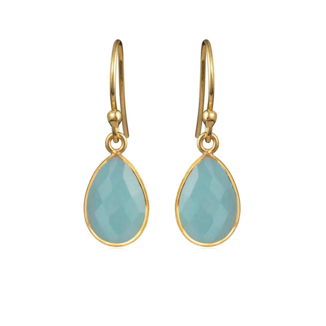 Smukke lyse mælke blå øreringe, som vil klæde hvert et outfit. Øreringen er guldbelagt, samt den smukke lyse mælke blå sten er ud af krystal. Krystallen er facet slebet, hvilket giver stenen et yderst unikt udseende, som giver et ekstra glimt. Øreringen måler 8×12 mm.