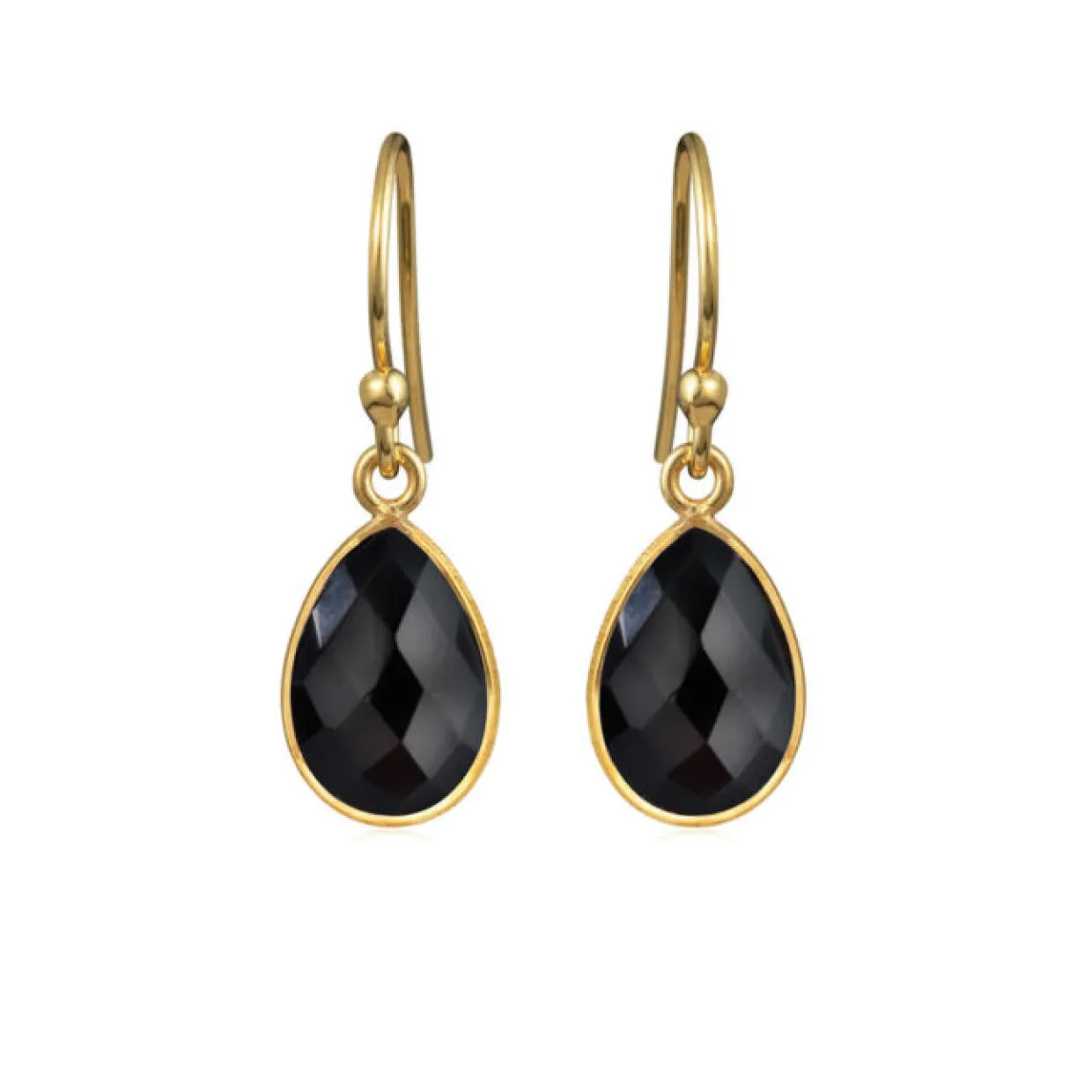 Smukke sort sten øreringe, som vil klæde hvert et outfit. Øreringen er af sølv som er blevet guldbelagt, samt den smukke sorte sten er ud af agat.