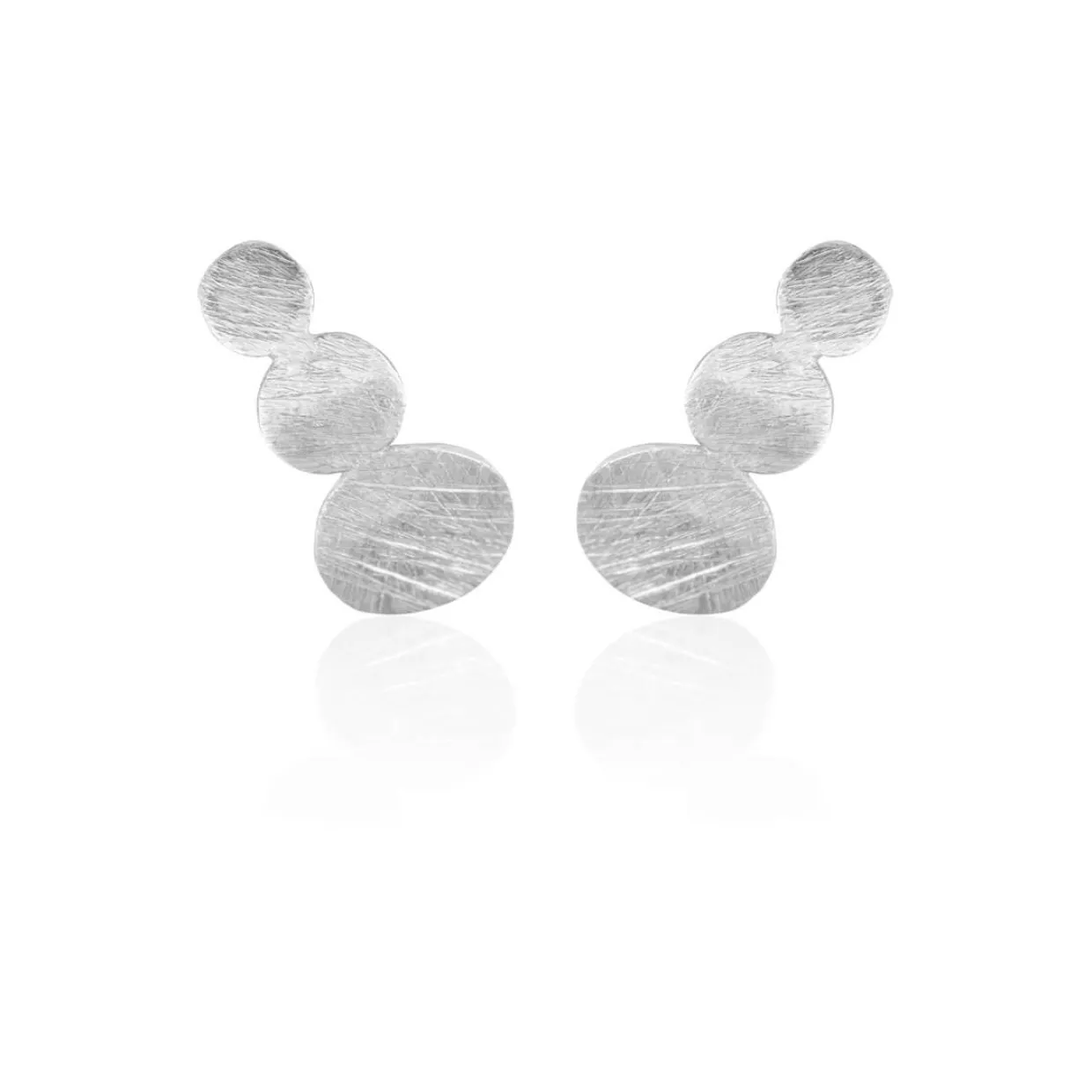 Sølv øreringe på stik med tre cirkler. De tre cirkler har en mat overflade og måler fra 4 til 7 mm og en samlet længde på 16 mm.