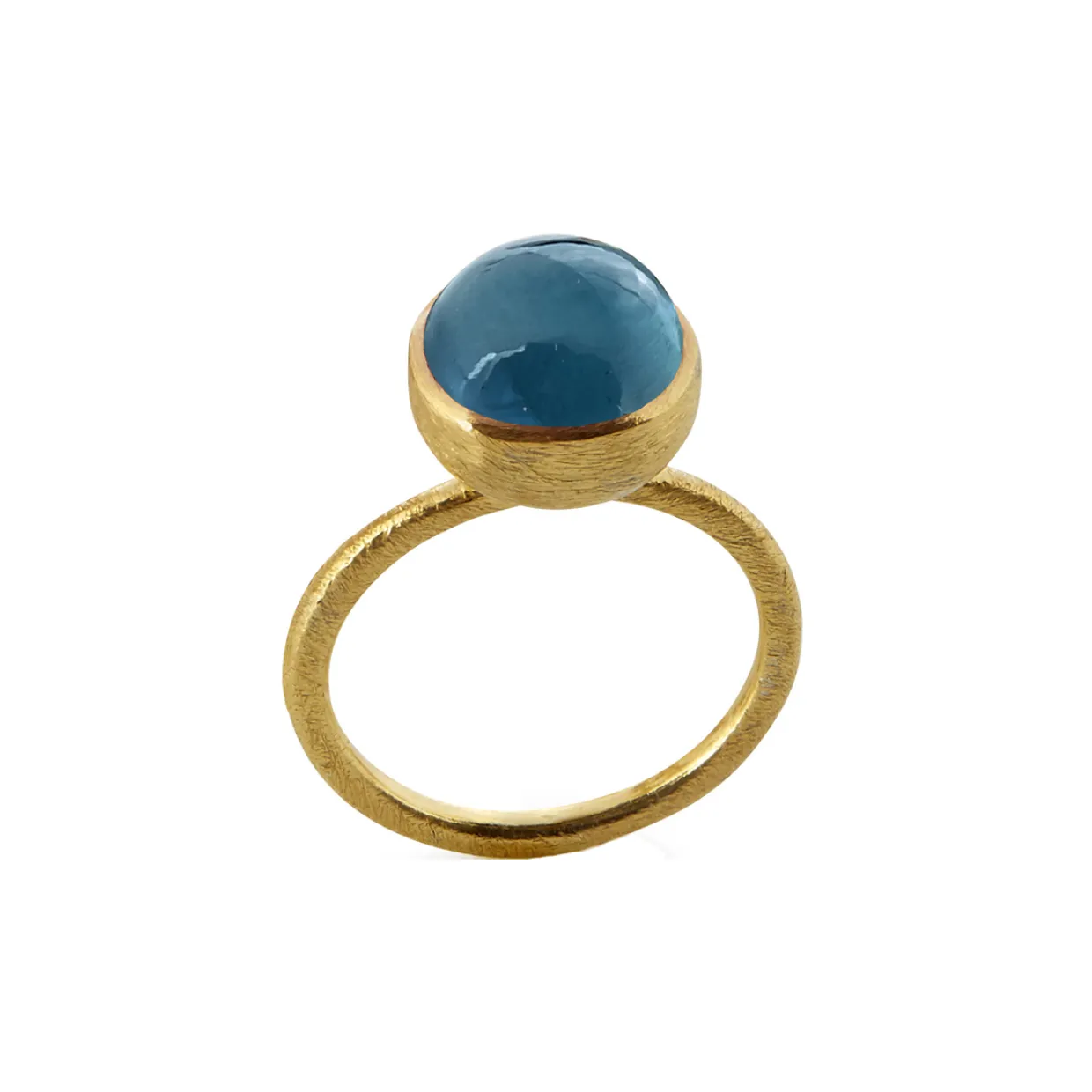Ring fra Susanne Friis Bjørner i forgyldt sterlingsølv med blå krystal kaldet “London Blue Crystal”. Stenen måler 10mm i diameter.