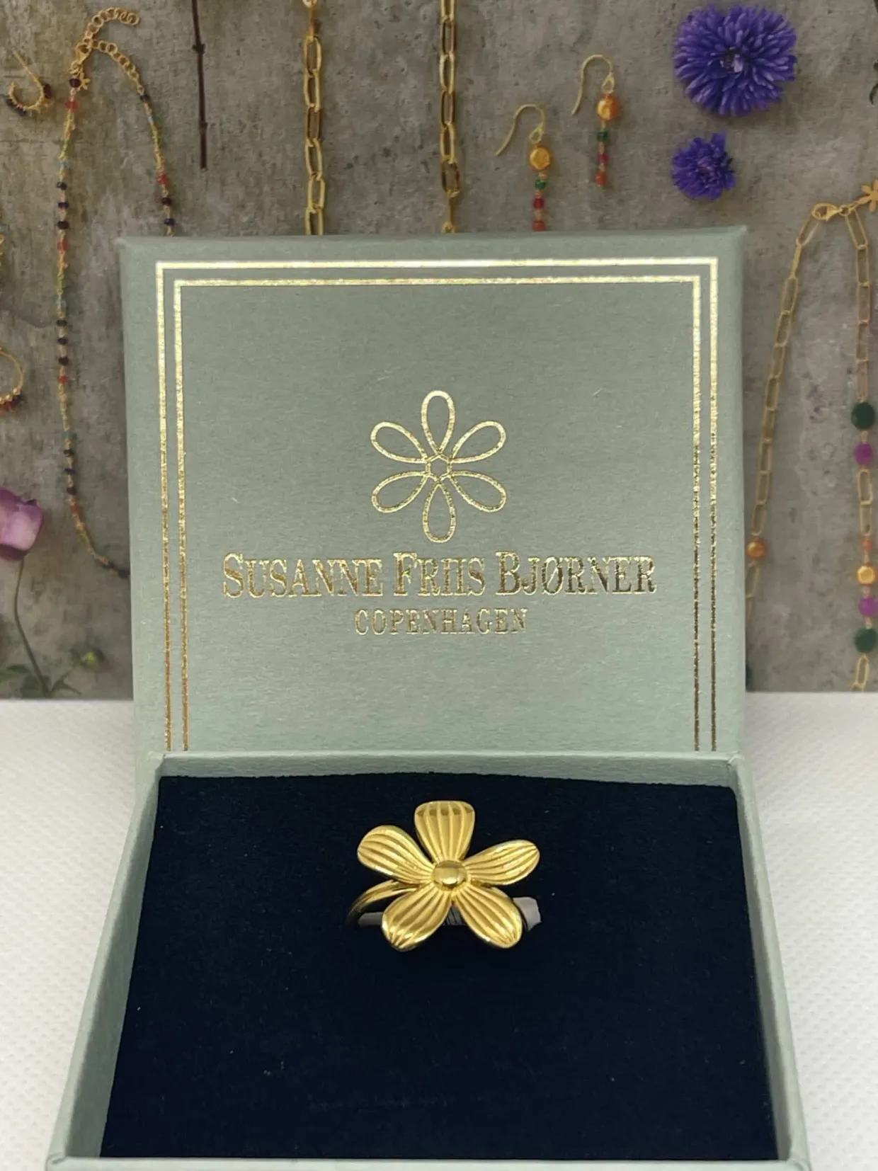 SUSANNE FRIIS BJØRNER RING SØLV FORGYLDT BLOMST – 1000-2