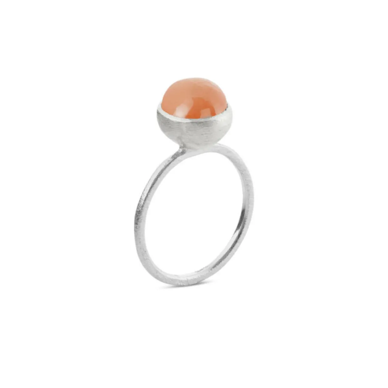 Ring fra Susanne Friis Bjørner i sterlingsølv med en cabochon-formet månesten stenen er orange brunlig farve med et flot skær. Stenen måler 8 mm i diameter.