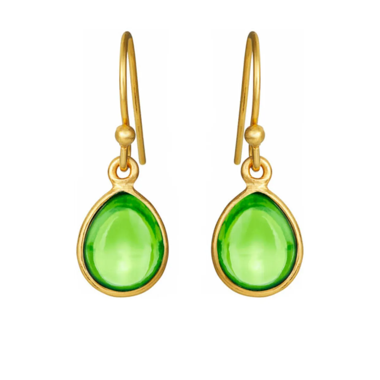 Super flotte sølv forgyldte ørehængere med grøn peridot krystal , øreringene har en smuk dråbe form og en glat overflade.