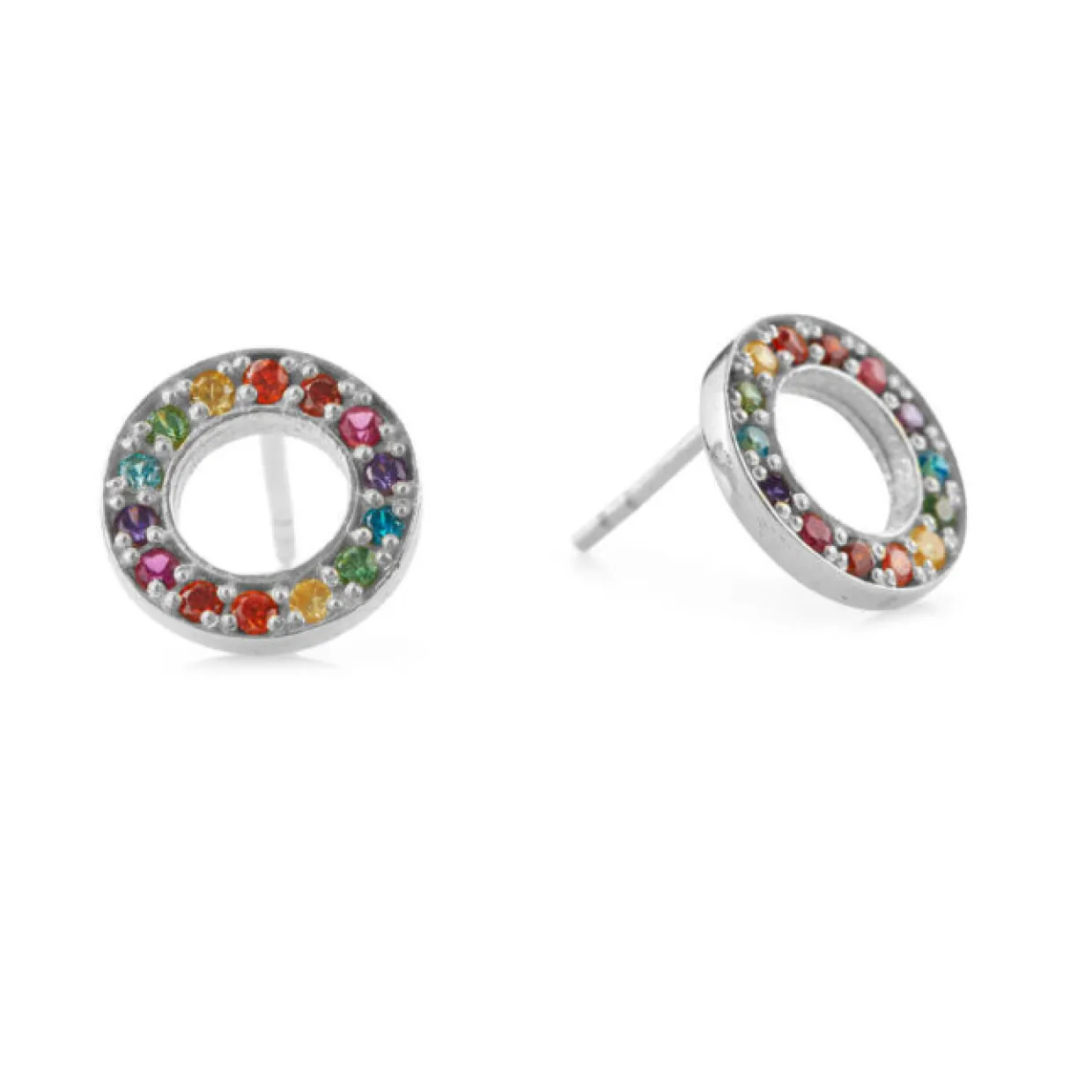 Super flotte runde øreringe med farvet zirkoner i alle regnbuens farver