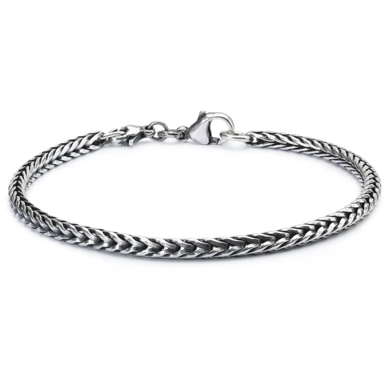 Signatur armbåndet fra Trollbeads er en rævehalekæde fremstillet i oxyderet sterlingsølv. Rævehalekæden består af en masse ender, der ikke er loddet sammen, hvilket derfor gør kæden meget fleksibel.