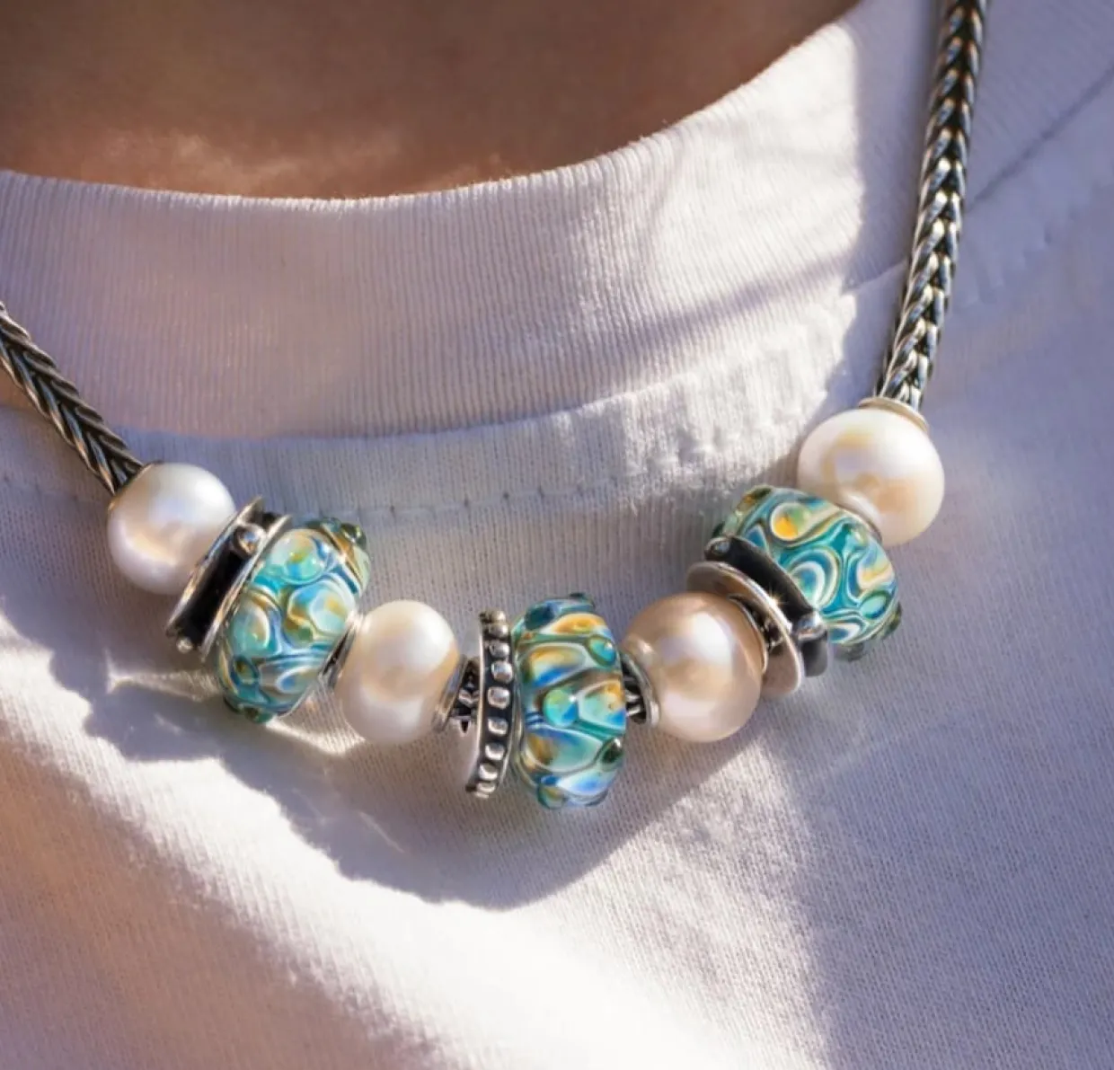 En flot og enkel sølvkugle fra Troldekugler, som er perfekt til at skabe lidt luft mellem glaskuglerne. Den skaber forbindelse og laver bro mellem forskellige nuancer og temaer i dit armbånd eller kæde.