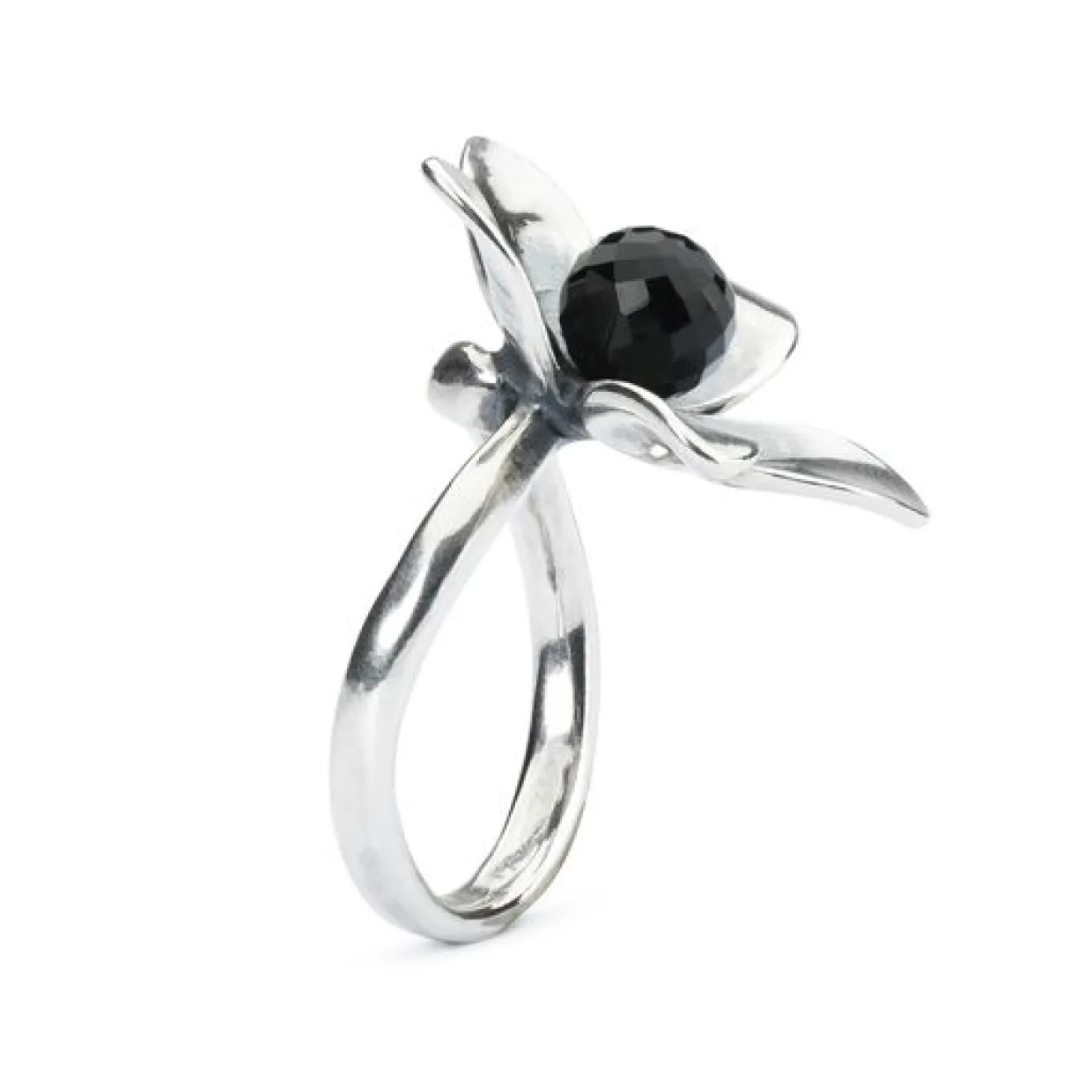 TROLLBEADS VENUS BLOMSTER RING SØLV MED ONYX – TAGRI-00384