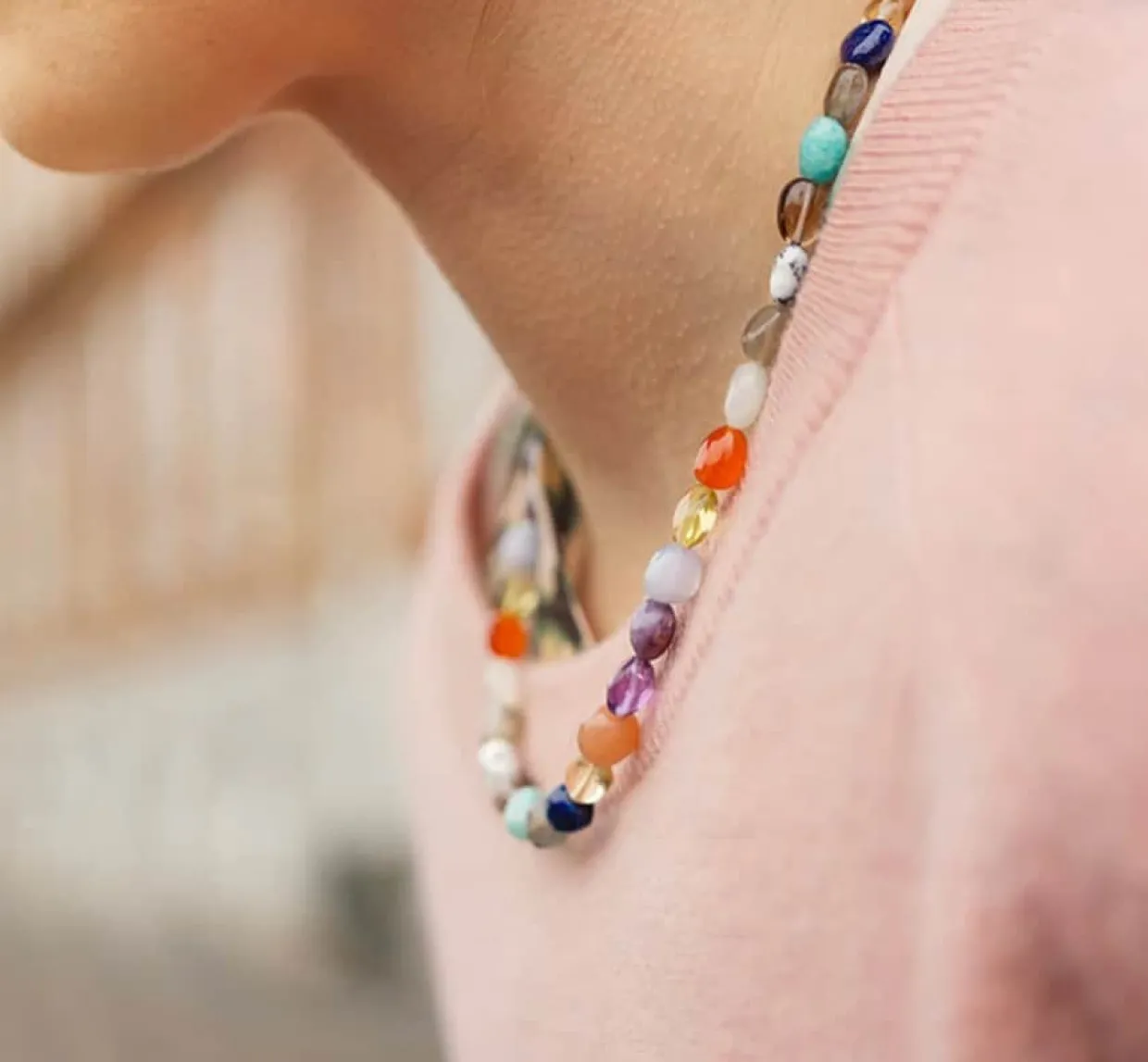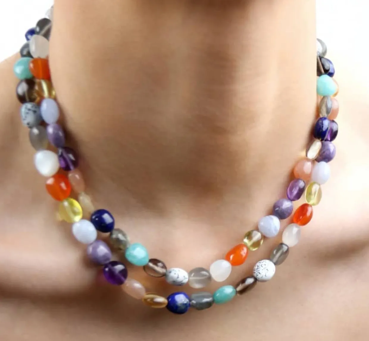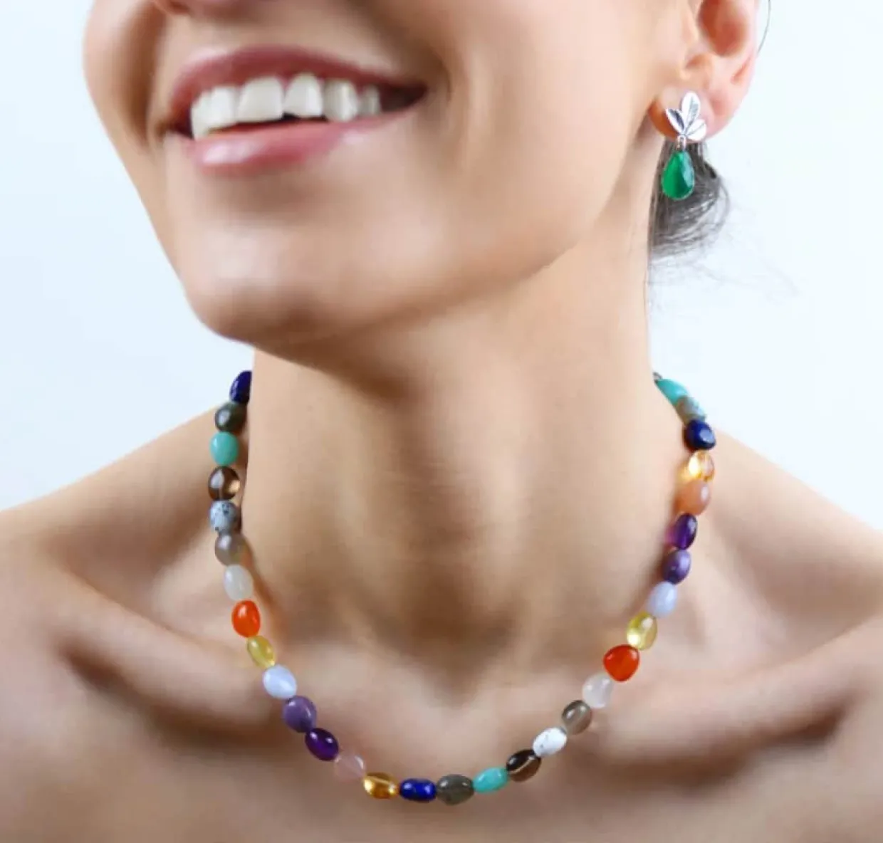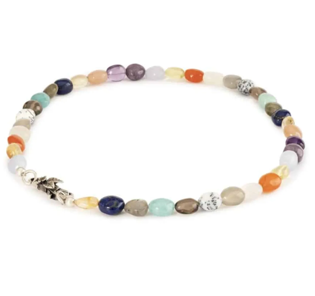 Frisk og feminin halskæde med 14 forskellige ædelstene.